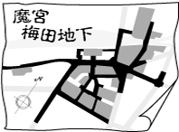 魔宮・梅田地下![]() 大阪の歩き方3は、広大な地下都市=私たちエイリアンにとって魔宮のダンジョン、梅田地下街の攻略法です。 初級レベル。阪急梅田駅から泉の広場へ行ってみましょう。プチシャンモールを通り、そねざきけいさつコミュニティプラザ前を左折、あとは直進ですから簡単です。しかし途中にはHEPファイブ・ナビオがパックリと口をあけています。行き止まりの袋小路もあります。フコクパレッタも迷い込むとやっかいです。注意して進みましょう。 中級レベル。こんどはそねざき署前からドーチカへ。いきなり待ち受けるのは丸い柱が立ち並ぶ広場。ここは歩行者の通行量もさることながら、その全員が勝手な場所を勝手な方向に向かって一目散に歩く、最大の難所。ここを人にぶつからずに行きたい方へ歩けたらもう中級はクリア同然です。阪神地下買い食いパラダイスでの食べ過ぎに気をつけましょう。 広場を無事通過したら全国名産品ストリートです。ニセ出張のお父さんが家族へのアリバイに使っているというのは本当でしょうか。この先の白くてきれいな道を直進するとハービスへ行ってしまいます。きれいじゃない方へ左折しましょう。西梅田駅の先が目指すドーチカです。これで中級クリア。 ではいよいよ上級レベル。ディアモール周辺エリアです。ここは阪神百貨店・第一生命・ヒルトンホテル・駅前第一〜第四ビルの地下部分が複雑につながっています。このエリアを自由に行き来できるようになってください。マルビル下の広場からはじめるといいでしょう。この広場から放射状に道がのびています。地上からの光が入るおしゃれな通りもあります。最後まで苦労するのは第一!第四ビルの二層ダンジョンでしょう。ここは私もまだ攻略できていません。 最後にヒント。地下街は地上の道路の下がメインストリートです。まず地上の地理を覚えましょう。 [1998年12月18日] |